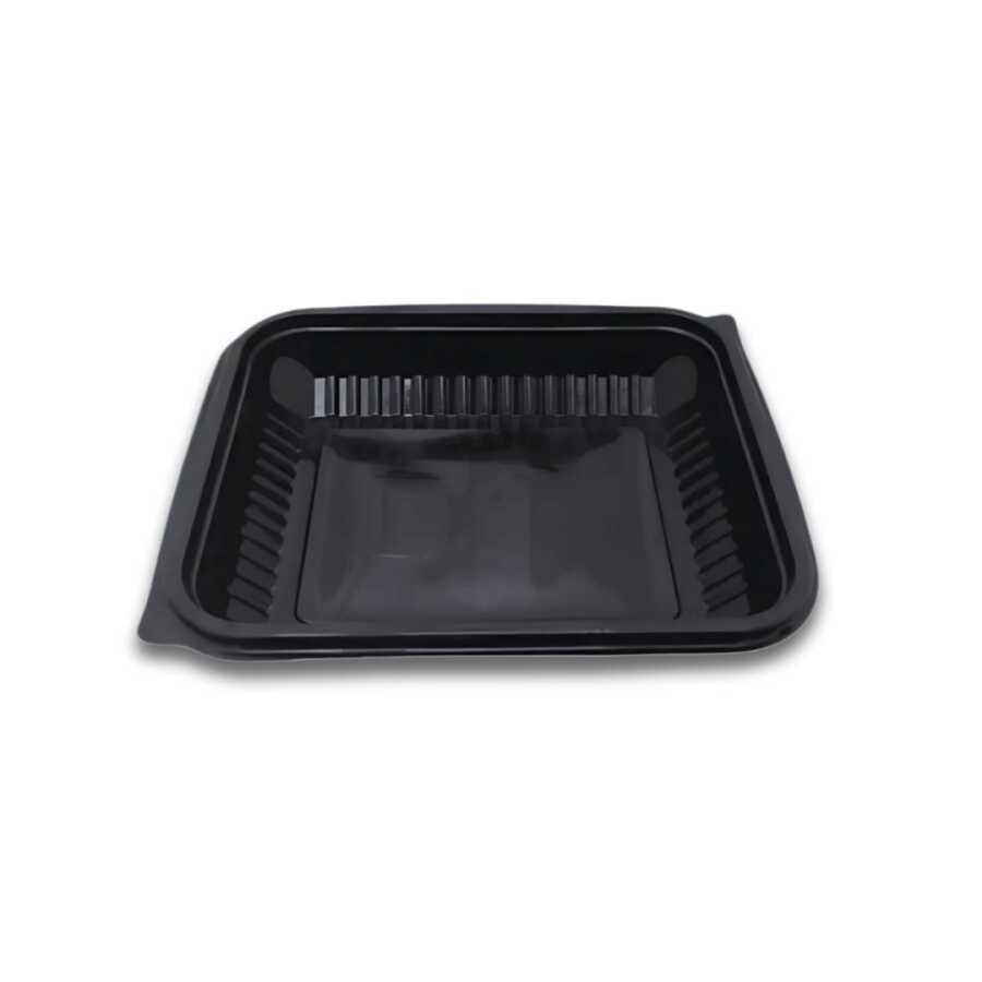 20 cm eninde, 24 cm boyunda, 4 cm derinliğinde siyah renkte, plastik, mikrodalgaya girebilen, ısıya dayanıklı, şeffaf kapaklı, kullan at sıcak servis setidir.